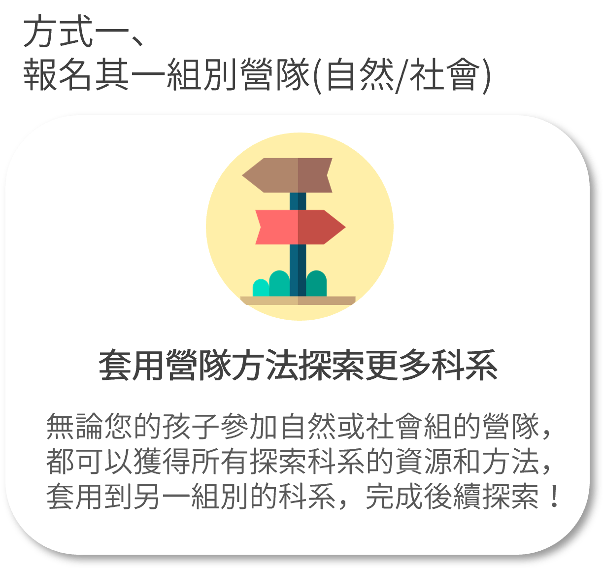 ▼若看完後,孩子仍然對選擇自然/社會組感到困惑,或對自然/社會組涵蓋的學群皆產生興趣,那可以考慮以下兩種啟夢營隊的報名方式來解決困境!